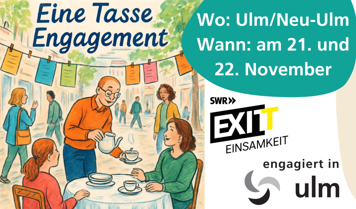 Mit der Aktion »Eine Tasse Engagement« haben wir dazu aufgerufen, am 21. und 22. November offenen Begegnungsmöglichkeiten in den Stadtteilen anzubieten. Mehr als ein Dutzend Organisationen in Ulm und Neu-Ulm luden an diesen Tagen zu einer Tasse Tee oder Kaffee und erwärmenden Gesprächen ein. Mitarbeiter:innen erzählten dabei von ihren persönlichen Erfahrungen mit ehrenamtlichen Aktivitäten. Die Aktion war Teil der SWR-Nacht »Exit Einsamkeit« und wurde lokal koordiniert von uns, der Freiwilligenagentur engagiert in ulm. In unserem Büro in der Radgasse 8 haben wir beispielsweise mit Interessierten Weihnachtspost für Senioren und Seniorinnen, die alleine sind, gestaltet. Verschiedene lokale Initiativen und gemeinnützige Organisationen beteiligten sich an der Aktion und trugen zu einem starken Gefühl von Gemeinschaft bei.