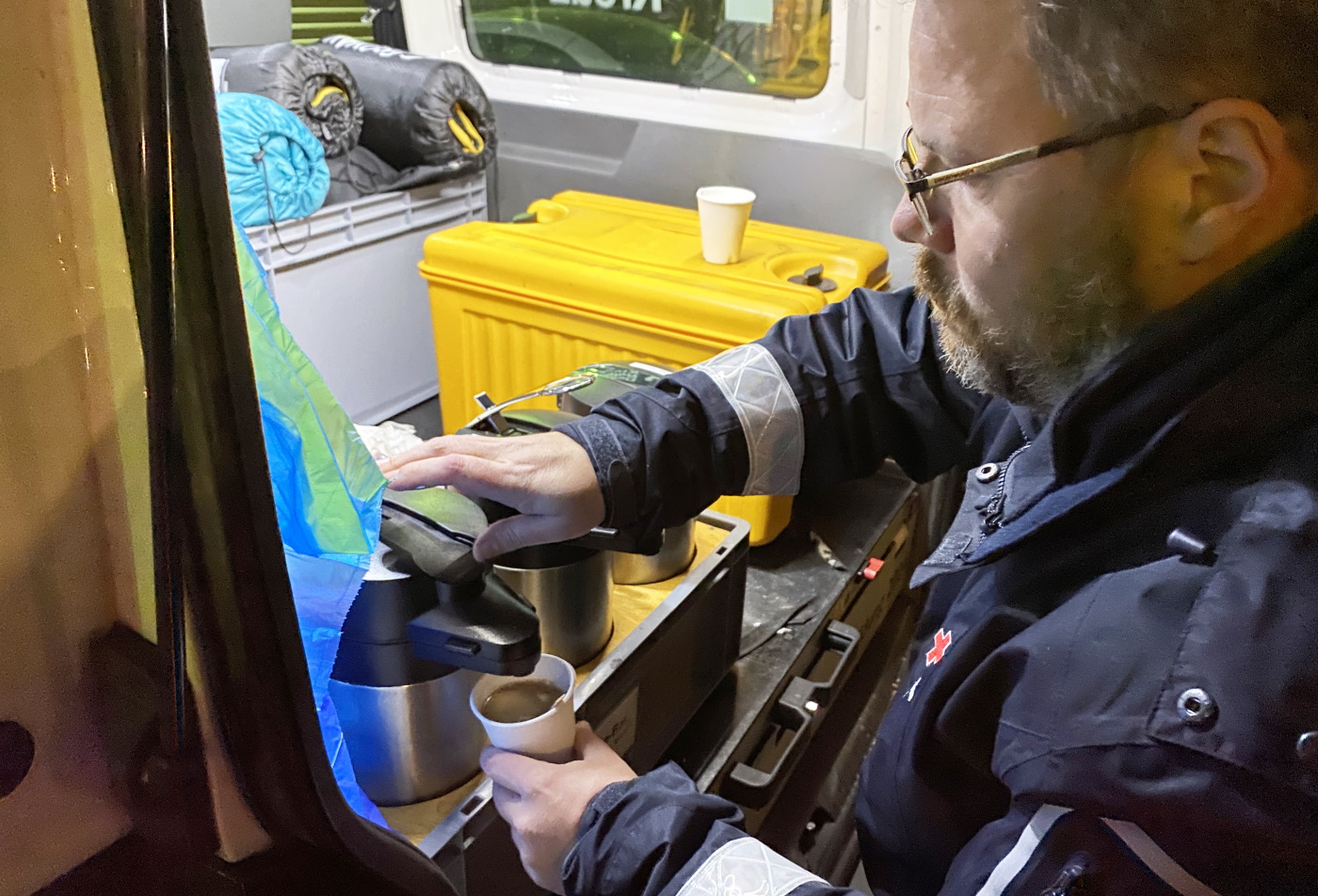 Sie versorgen Menschen nachts mit warmer Suppe, heißen Getränken, belegten Brötchen, Isomatten oder trockener Kleidung. Wir haben Eva, Gitte und Ralf auf ihrer Tour durch die Stadt mit dem Kältebus des DRK-Kreisverbandes begleitet.