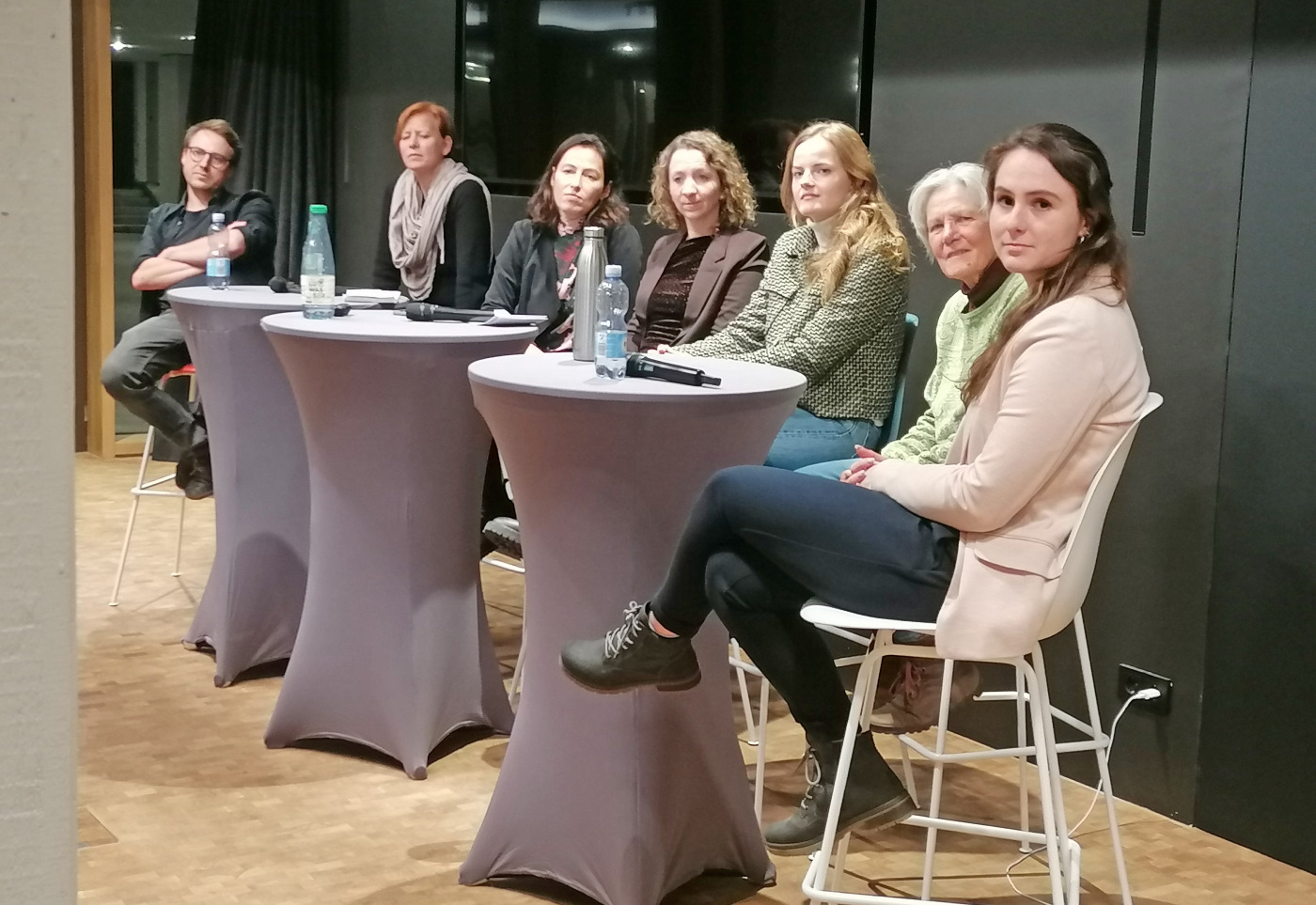 Die anschließende angeregte Diskussion der Vortragenden, ergänzt um Hauptabteilungsleiterin Carola Christ von der Stadt Ulm, zeigte den großen Bedarf an Austausch und Information zu dem Thema auf. Zur Sprache kamen grundsätzliche Fragen wie die nach einer anerkannten Definition von bezahlbarem Wohnraum („gibt es nicht“), aber auch ganz konkrete Themen wie die nach einer Ulmer Anlaufstelle für Gemeinschaftswohnprojekte („mit Fragen zu konkreten Projekten direkt an die Stadt Ulm wenden“). Das interessierte und motivierte Publikum konnte sich im Anschluss noch an Infotischen zu lokalen Projekten und Angeboten rund um gemeinschaftliches Wohnen informieren. Unter anderem waren Ansprechpersonen des „Wurzel-Hausprojektes“ vor Ort, eine Gemeinschaft, die in Ulm ein Syndikats-Wohnprojekt umsetzen möchte. Wer Interesse an einer Mitwirkung oder auch ein geeignetes Gebäude hat, findet mehr unter www.wurzel-hausprojekt.de.